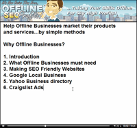 You see...lately there has been a rush of video products teaching online marketers how you can help offline businesses. A lot of these videos are great by teaching you how to approach business owners and close the deal which is necessary!
