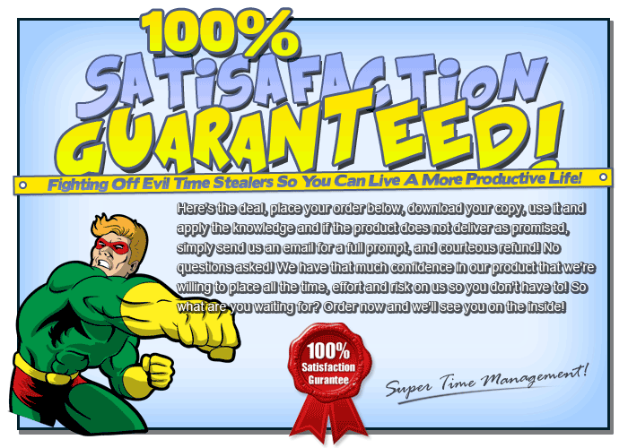 You see having some or part of the pieces of the puzzle is just as good as having none of them. Without complete knowledge you're only kicking yourself and wasting both your time and money. Super Time Management puts you on the right track to starting your business. Learn to walk before you run and I can guarantee you'll do very well!