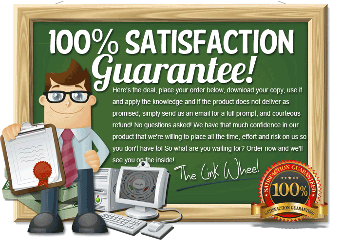 When you purchase the The Link Wheel System program you will have 60 days to review the product and ensure your satisfaction. I am 100% confident you will be absolutely delighted with everything you will learn from this high quality video training. You are covered by my iron clad, no quibbles satisfaction policy which means if you are not totally delighted with this program you will get a rapid and courteous refund.