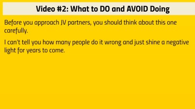 In this video course, you will learn what you need to get started, how to find joint venture partners, approach them, and become a JV magnet. Remember, while everyone is too busy spamming them, you’re doing it professionally. You’re doing it smart.