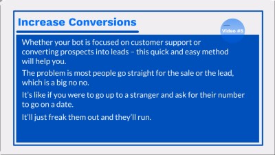Grab this video course and learn how to use Facebook Messenger to engage with your prospects and add more automation to the sales process to boost your profits!