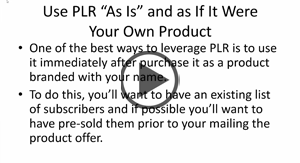 Find out how to use PLR 'as is' with minimal modication to sell or monetize quickly. This technique is great for cash flow and to get some momentum going. |