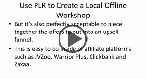 Instantly position yourself as an expert in your niche and use PLR to create offline workshops and presentations. This video will reveal a perfect strategy for setting you up for a high-ticket sale. |