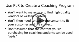 Coaching programs can range from $100 an hour to $50,000 for a weekend event or more. Discover how to combine your teaching skills and PLR to bring tremendous value to the marketplace. |