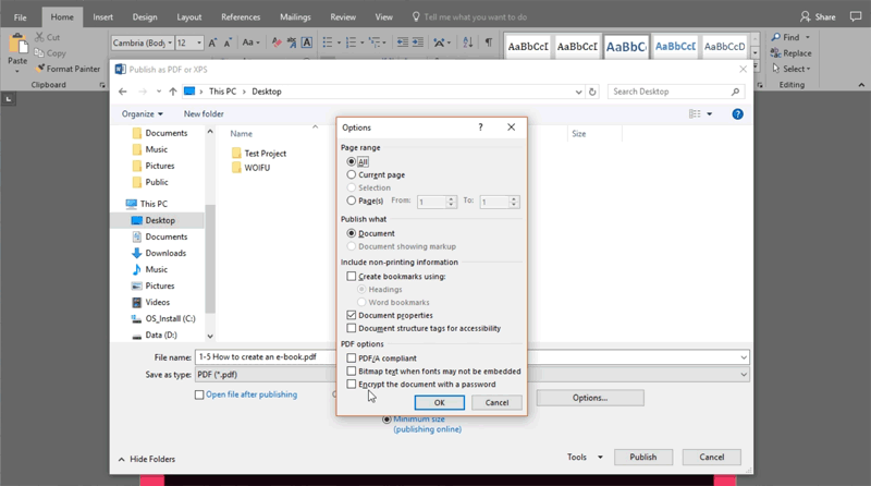 Simple steps to convert your word document to PDF while password protecting your completed e-book
