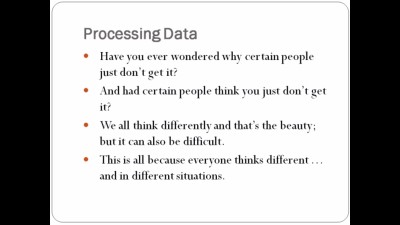 Like I talked about in the previous video, people process data differently. Let me give you some examples. Some people think by gut and just go with the flow, and they tend to be scattered all over - at least when someone of a different personality looks in. They have sticky notes all over their desk. Then some people think by using their senses through gaining facts.
