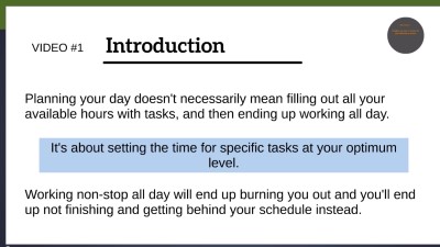 Discover how to effectively manage your time and plan your day right. This course was designed to help improve your time management skills with helpful easy-to-follow tools and techniques.