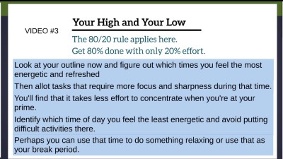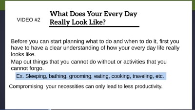 Now that you have an idea of what your everyday looks like, it’s time to determine your ‘high’ and ‘low’. Your ‘high’ refers to when you are the most productive, while your ‘low’ refers to you when you are least productive. In this video, you will discover that having an understanding of your ‘high’ and ‘low’ moments can significantly improve your time management skills.